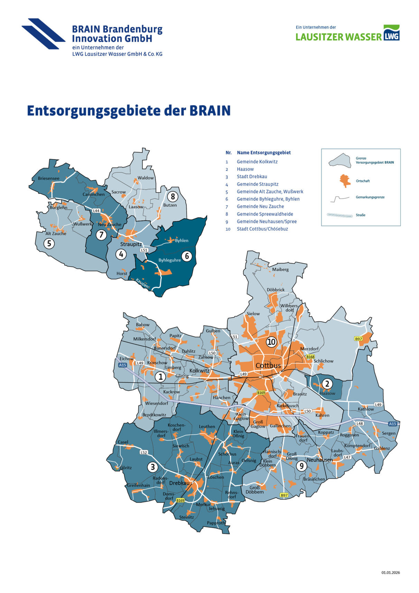 Im Verantwortungsbereich der LWG Lausitzer Wasser GmbH & Co. KG, der Muttergesellschaft der BRAIN, gelangen 90,9 % des anfallenden Abwassers über ein Kanalnetz direkt zur Kläranlage. Die verbleibenden knapp 10 % des Abwassers werden dezentral entsorgt, da insbesondere im dünn besiedelten ländlichen Raum der Anschluss an ein zentrales Abwasserbeseitigungssystem nicht oder nur mit unverhältnismäßig hohem wirtschaftlichen Aufwand hergestellt werden könnte. So gelangt in diesen Gebieten das Abwasser in Kleinkläranlagen und abflusslose Sammelgruben, die regelmäßig geleert müssen. Hierbei spricht man von einer mobilen Entsorgung von Fäkalien und Abwässern, die dann zu einer zentralen Kläranlage transportiert, dort gereinigt und dem natürlichen Wasserkreislauf wieder zugeführt werden.